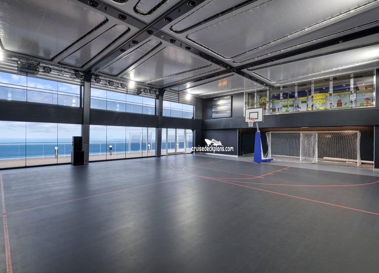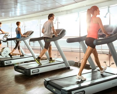 Fitness merkezi, geminin üst güvertelerinden birinde ve manzaralı bir konumda yer alır; bu sayede egzersiz sırasında misafirler hem deniz hem de gökyüzü manzarasının keyfini çıkarabilir.