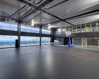 Alanın tasarımı, geniş pencereler ve doğal ışık ile desteklenmiş olup, ferah ve motive edici bir antrenman atmosferi sunar.